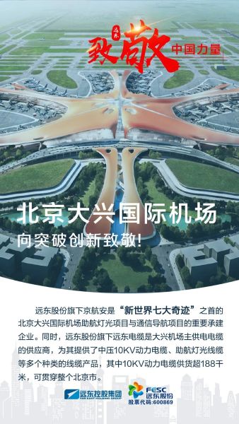 遠(yuǎn)東股份智能纜網(wǎng)板塊持續(xù)完善全品類產(chǎn)品布局,深耕清潔能源、智能電網(wǎng)、智能制造、智慧交通、綠色建筑、數(shù)字通訊、海洋工程等行業(yè)。遠(yuǎn)東為天宮二號、核電華龍一號、白鶴灘水電站、港珠澳大橋、北京大興國際機(jī)場、昌吉-古泉±1100千伏特高壓直流輸電工程、中國尊等多項國家重器工程提供核心產(chǎn)品與技術(shù)支持。